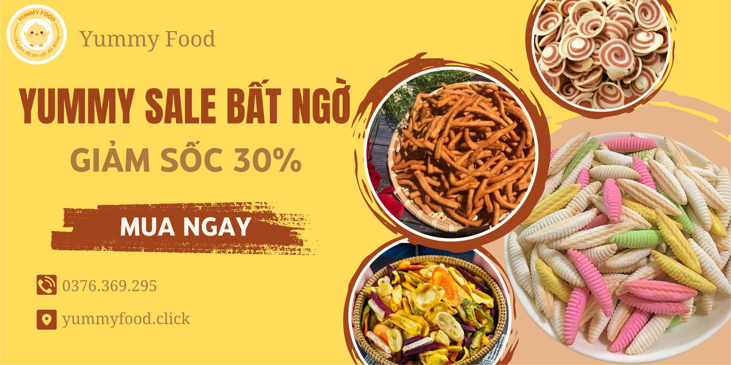 Bạn là tín đồ ăn vặt? Đừng bỏ lỡ cơ hội vàng mỗi ngày với chương trình ưu đãi Yummy Sale Bất Ngờ – Giảm sốc 30% cho toàn bộ món ăn vặt tại https://yummyfood.click!